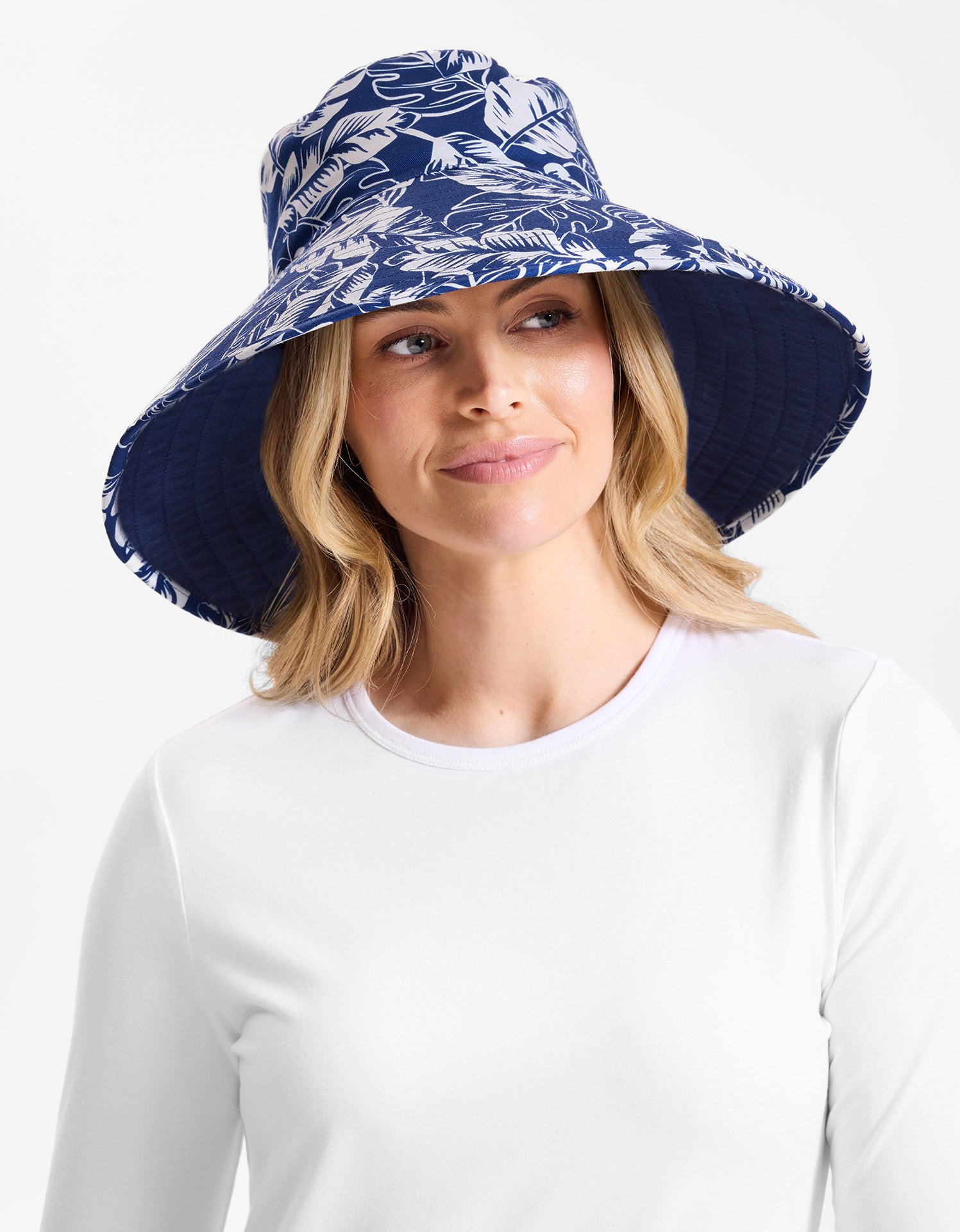 Now on sale, our Ultra-Wide Tropical Sun Hat combines bold style and sun-smart function. Crafted from 100% cotton canvas in a vibrant tropical print, it features a generous 5" (12.5 cm) brim for excellent sun protection. With a detachable chin strap and internal drawstring, it offers both comfort and a secure fit—perfect for sunny days outdoors.